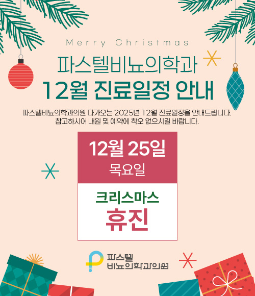 파스텔비뇨의학과의원 25년 12월 진료 일정 안내